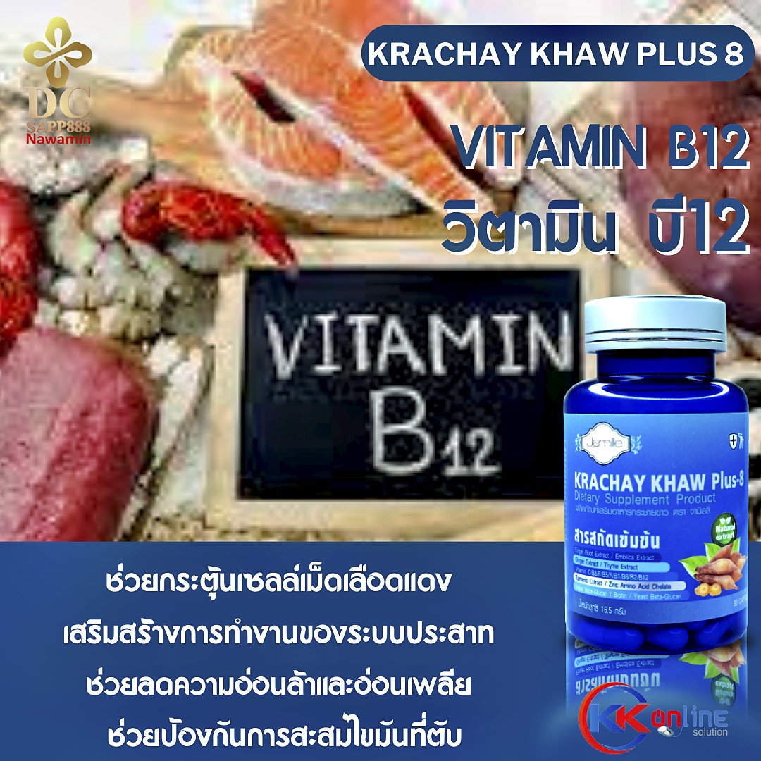 กระชายขาวพลัส 8 Krachay khaw plus-8 มี วิตามินบีรวม 7 ชนิด (B1,B2,B3,B5,B6,B7,B12)